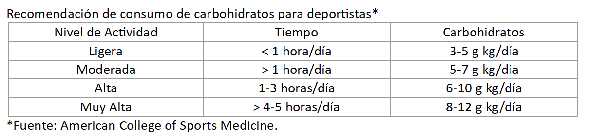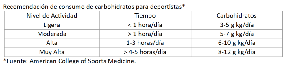 Cómo consumirlos: Según el American College of Sports Medicine —referencia en medicina deportiva—, la recomendación de consumo de carbohidratos (que pueden obtenerse a través de suplementos que los contengan) varía según el peso del deportista, su nivel de entrenamiento y el tiempo de actividad (ver tabla más abajo).